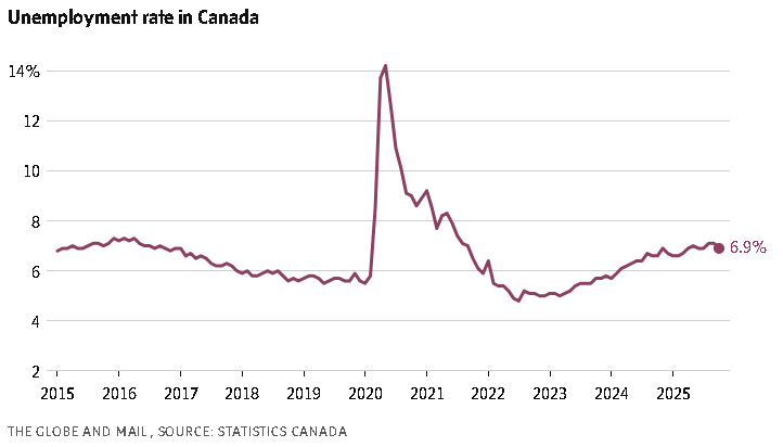 Ontario, for example, added 55,000 jobs in October. The province’s economy has been slammed by U.S. tariffs targeting the automotive and steel industries, a sluggish real estate sector and layoffs in postsecondary education.