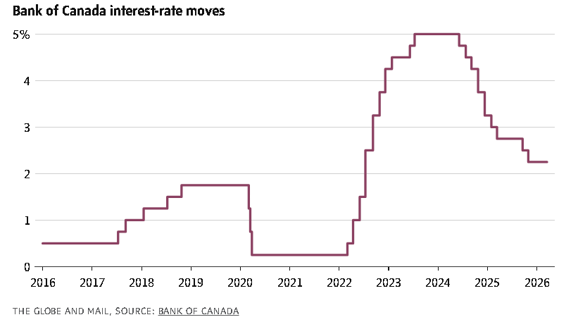 The Bank of Canada held its benchmark interest rate steady on Wednesday but said it’s prepared to adjust monetary policy if needed amid a global oil price shock that risks reigniting inflation.