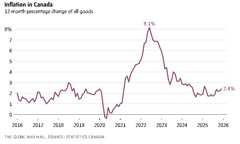 The rise in headline inflation ​in December was driven by a temporary sales tax break on certain food and children’s items authorized by the previous Liberal government headed by Justin Trudeau in the comparative December, 2024, period.