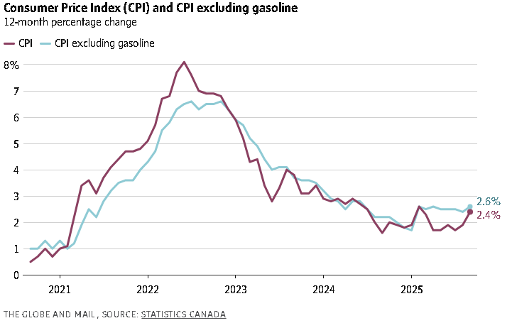The Bank of Canada resumed cutting rates in September after three consecutive holds, finding that growth and employment concerns outweighed the upside risks to inflation from tariffs. The bank’s benchmark interest rate is now 2.5 per cent.