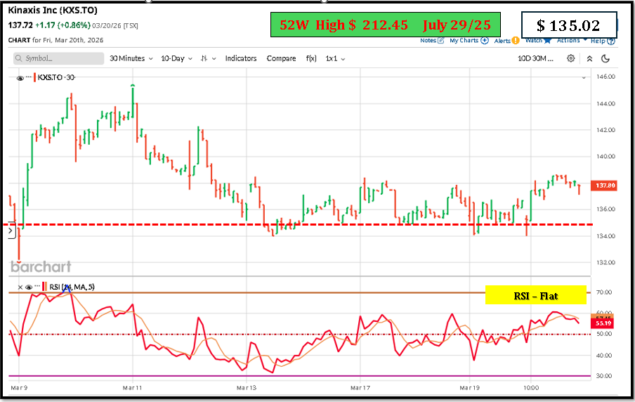- KXS.TO is down ~-4% to -5% over the last 10 trading days (≈C$143 → C$137)
